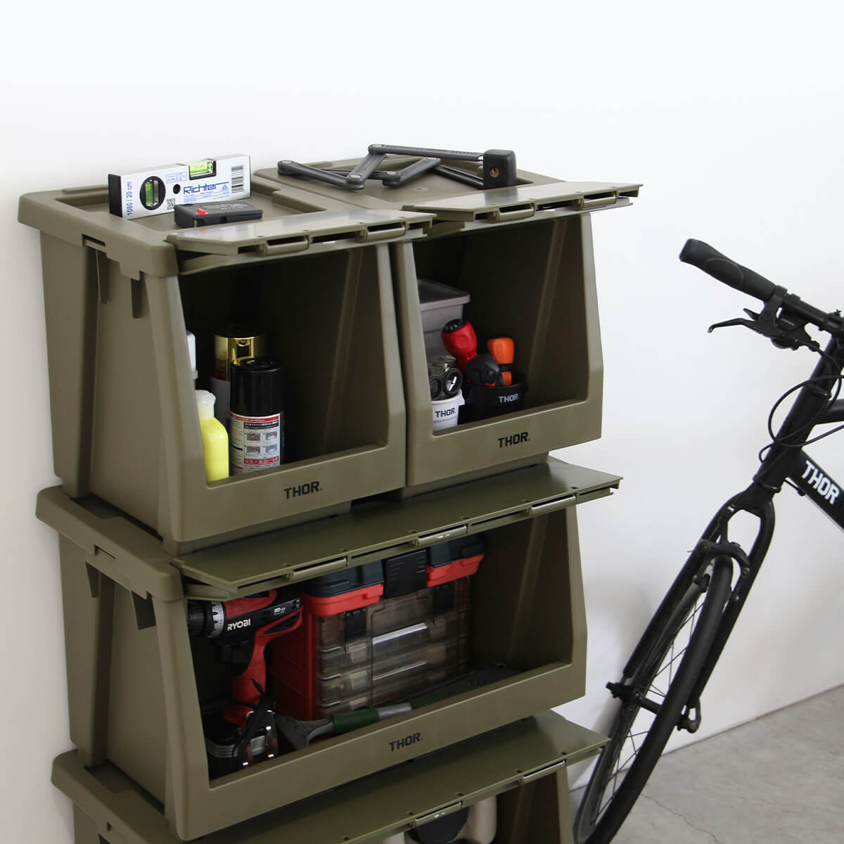 “棚”にスポットを当て、THORが新しく提案するSTACKING SHELF CONTAINERシリーズの20L専用の蓋パーツ。蓋を使用することで異なるサイズの本体でもフィットする設計なので安定して積み重ねができ、自由度の高い収納を実現させます。