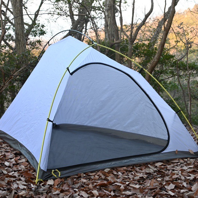 耐風性の高い流線型のフォルムが特徴的な、日本限定モデルの完全自立式の超軽量2人用テント