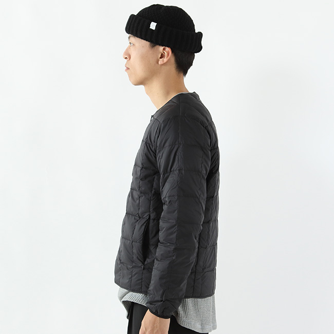 TAIONの定番、ベーシックインナーダウンは、ジャケットやコートの下に着るのはもちろん、Tシャツ・シャツ・パーカーなどの上にも気軽に羽織れる、軽くて暖かく着回しやすいシンプルなデザインが特徴です。嵩高が高く、保温性の高い800FPダウンを使用。