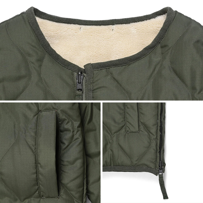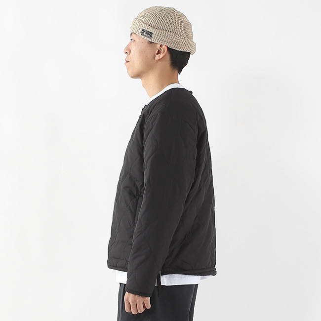 表側には、丈夫なリップストップ生地を使用し、保温性に優れた800FPのダウンを採用、ヘチマキルトのダウンステッチでミリタリー感を演出。裏側には、毛羽感のあるボアを採用し、防寒性も担保。