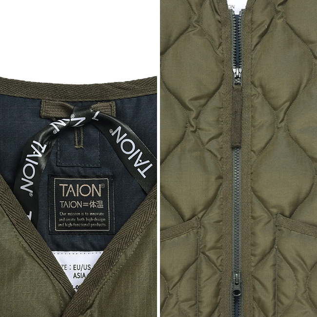 タイオン ミリタリーVネックジップダウンベスト ユニセックス TAION メンズ レディース TAION-001ZML-1 アウター ベスト ダウン 防寒 重ね着 レイヤード おしゃれ キャンプ アウトドア