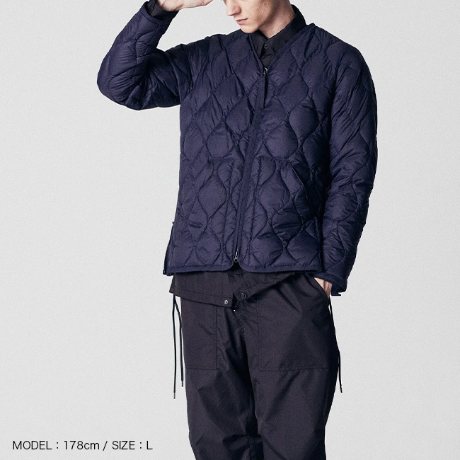 軽くて柔らかな生地を使用し、保温性に優れた800FPのダウンを採用。ヘチマキルトのダウンステッチが、ミリタリー感を演出。