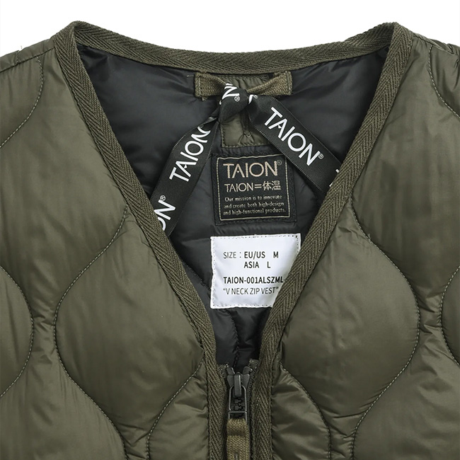 タイオン ミリタリーVネックWジップダウンジャケット ユニセックス TAION MILITARY V NECK W-ZIP DOWN JKT メンズ レディース TAION-101ALSZML-1 ダウンコート 防寒 保温 アウター トップス 旅行 トラベル キャンプ アウトドア
