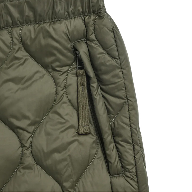 軽くて暖かく柔らかい、ミリタリーテイストのダウンパンツです。