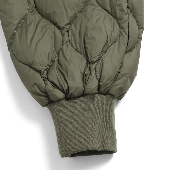 ヘチマキルトのダウンステッチが、ミリタリー感を演出。