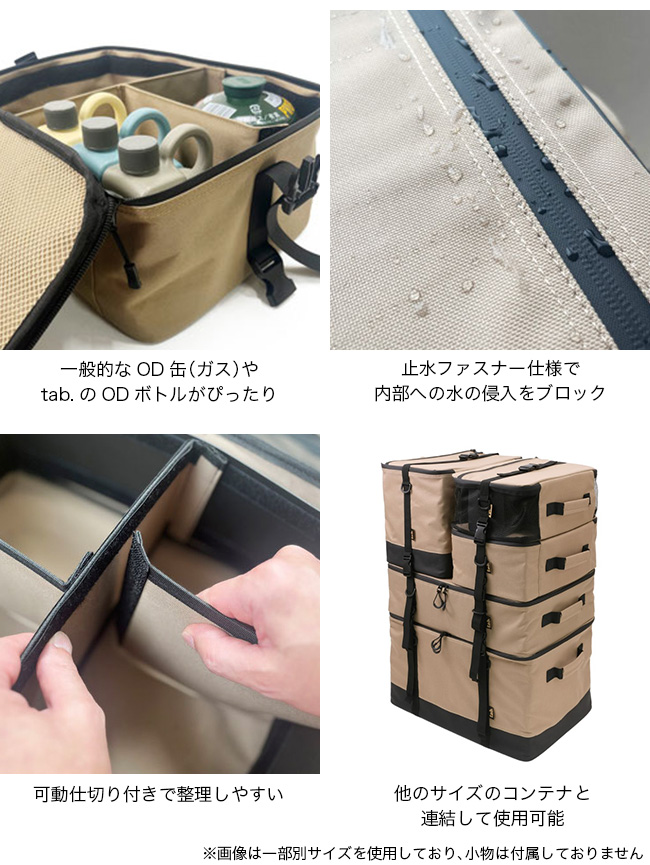「マージコンテナ」はお好きなサイズとカラーを組み合わせて自分好みにカスタマイズしながら使える連結式のセミハードコンテナです。撥水高密度ナイロン+防水PVC+止水ファスナーでアウトドアシーンでタフに使えます。