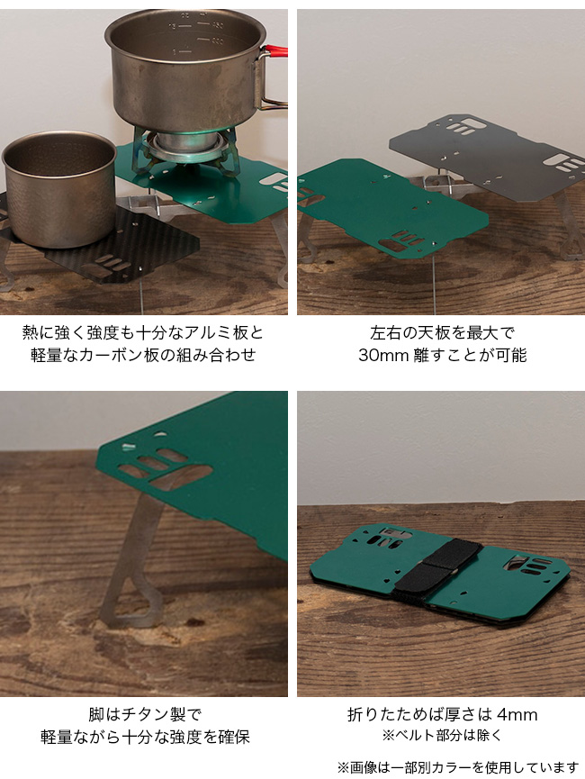 ・カーボンの天板は熱に弱いので火器等を載せる場合にはご注意ください