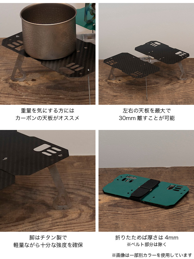 ・カーボンの天板は熱に弱いので火器等を載せる場合にはご注意ください