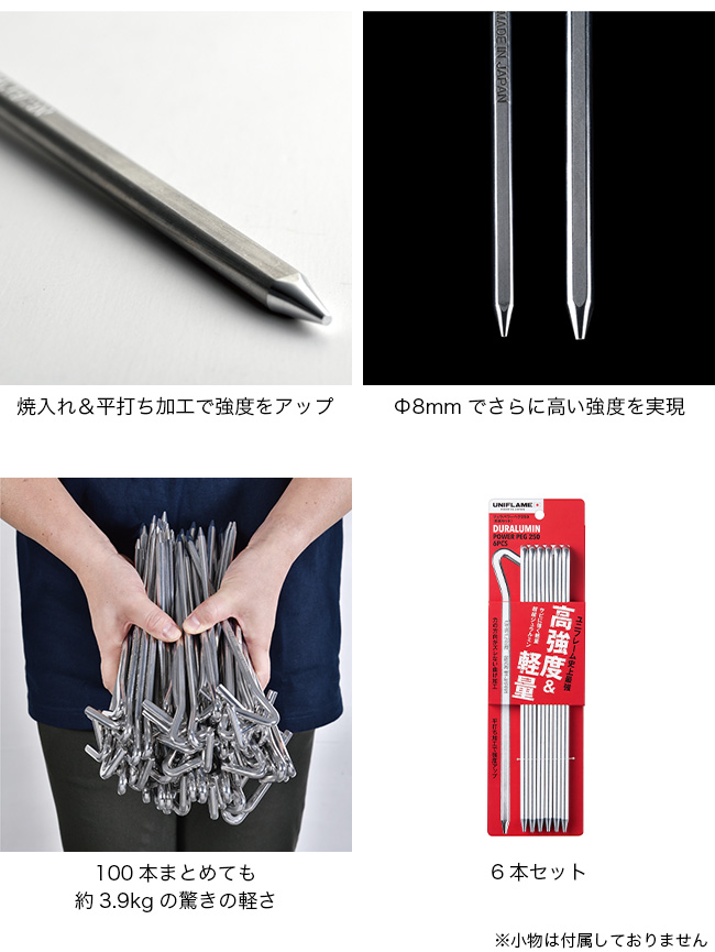 ユニフレーム ジュラパワーペグ250(6本セット) UNIFLAME 682388 ジュラルミン 軽量 丈夫 テント タープ キャンプ アウトドア