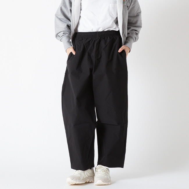 汚れがつきにくい、シワがつきにくい、静電気が起きにくいちょっと変わったポリエステル素材を使用してます。ゆったりとしたバルーンパンツ。