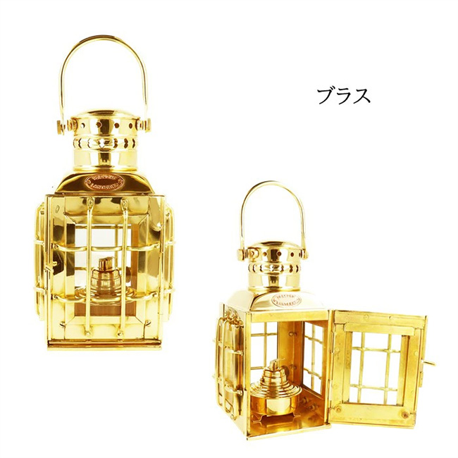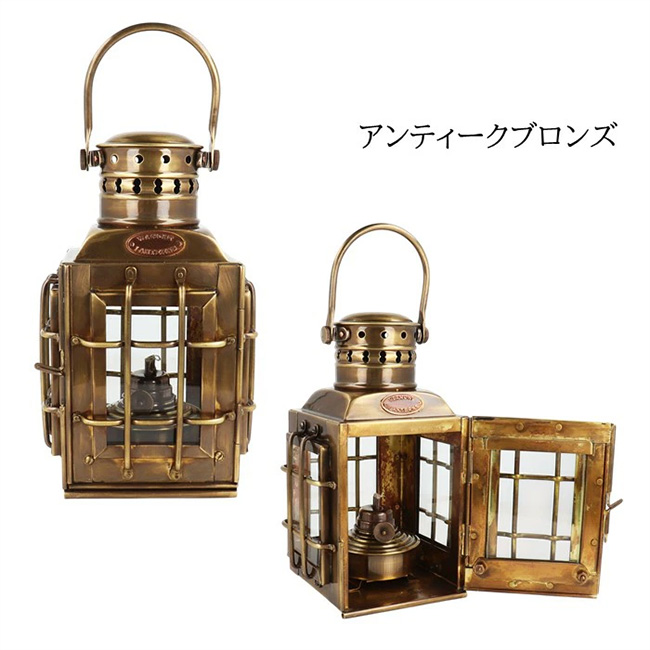 ミニシップチーフオイルランタンは一等航海士が夜中に見張台に行く為に作られたランタンを再現したデザインでキャンプ・家庭で機能的に使用出来ます。ボディー色は真鍮そのものを感じさせるブラス色、どのシーンにも合うアンティークブロンズ色の2色をご用意しています。