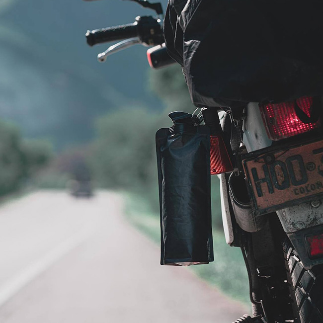Anti-Bottleは満水時には自立し、空にすると折りたたんでポケットやバッグに簡単に収納できます