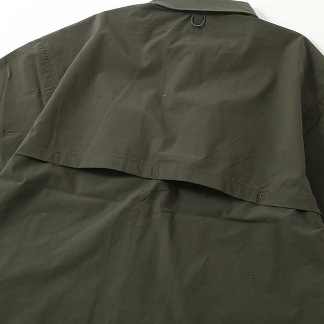 360度ストレッチの高い伸縮性とマットな素材感が定評のELASTIC NYLONを使用した半袖シャツ。ブランドのアイコンアイテムであるデナリジャケットの要素を取り入れ、フロントはファスナー開閉、前身にはデナリの特徴的なフラップ付きのファスナーポケットを配置。