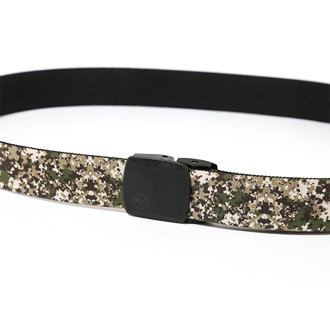 ストレッチ性のあるウェービングテープを使用し、腰周りにしなやかにフィットするベルト。