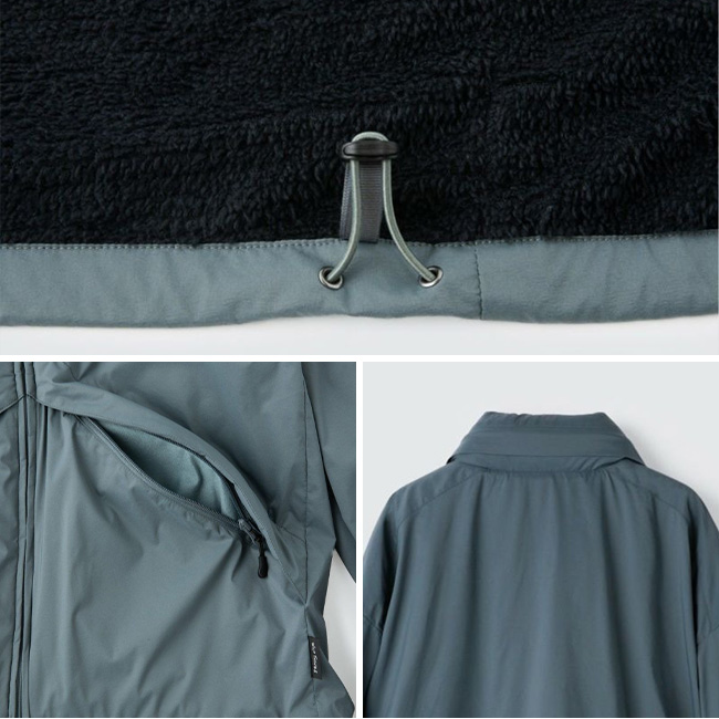 表地は撥水ナイロン、裏地にはインサレーション機能をもつ起毛メッシュ素材PRIMALOFT ACTIVE EVOLVEを採用。