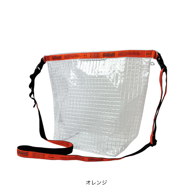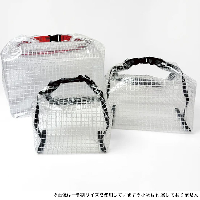 WEEKENDERでは定番のロールトップ式ケースを透明なグリッド生地で作りました。