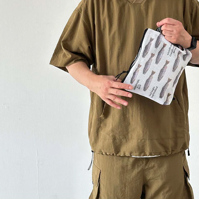 厚手でしなやかな素材感のメッシュ生地に川魚:ヤマメのプリントを施したを人気シリーズ