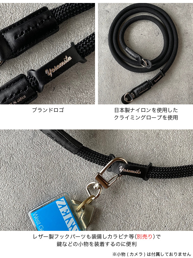 【MADE in JAPAN】あなたの大切なカメラをタフなクライミングロープで守ります。最上級レザーを日本の熟練された職人が丁寧に一本一本縫製しています。