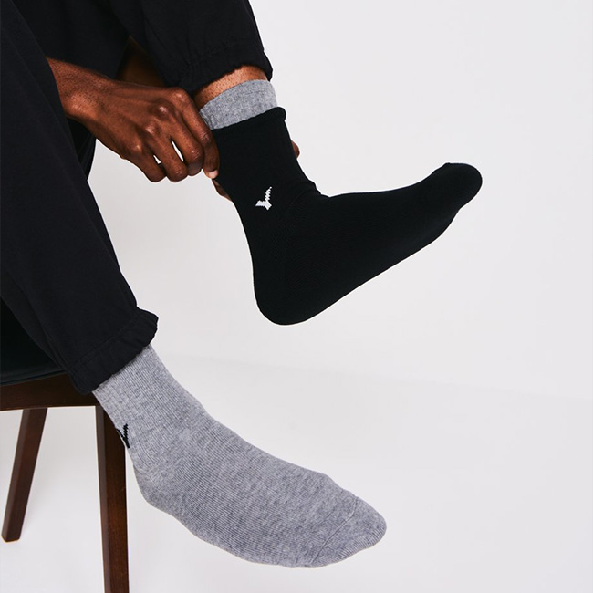 吸湿性に富み、速乾性にも優れた靴下に非常に相性の良い素材を使用。足の裏には、クッション性の高いパイル仕上げ。