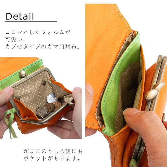 ぷっくり可愛いフォルムのカラフルな“かぶせ付きがま口財布” 軽くて柔らかく、使うほどに味わいが増す、プルアップ加工の馬革を使用。 馬革は、食肉副産物として得られる皮を有効活用したサステナブルな天然素材です。 毎日をちょっとハッピーにしてくれる、ビビッドでポップなデザインも魅力です。 ■使いやすさにこだわった、かぶせ×がま口設計 ・かぶせ(フラップ)付きで中身が飛び出しにくい安心設計 ・がま口ならではの大きく開く口金で、コインが取り出しやすい ・カードやお札を整理できる収納スペースを確保 ・コンパクトなのに必要なものがしっかり入るサイズ感 ■こんな方におすすめ ・経年変化を楽しめる本革の財布が欲しい ・人と被りにくい、個性のあるレザーアイテムを探している ・小ぶりで使いやすい財布がほしい ・サステナブル素材のアイテムを選びたい 長く愛せる、育つ財布。 使うほどに深みを増し、自分だけの表情へ。 天然素材ならではの魅力を存分に楽しめる、 持つだけでワクワクする、個性あふれる馬革がま口財布。 毎日のお供に、特別なギフトに、遊び心とサステナブルな選択をプラスしませんか?