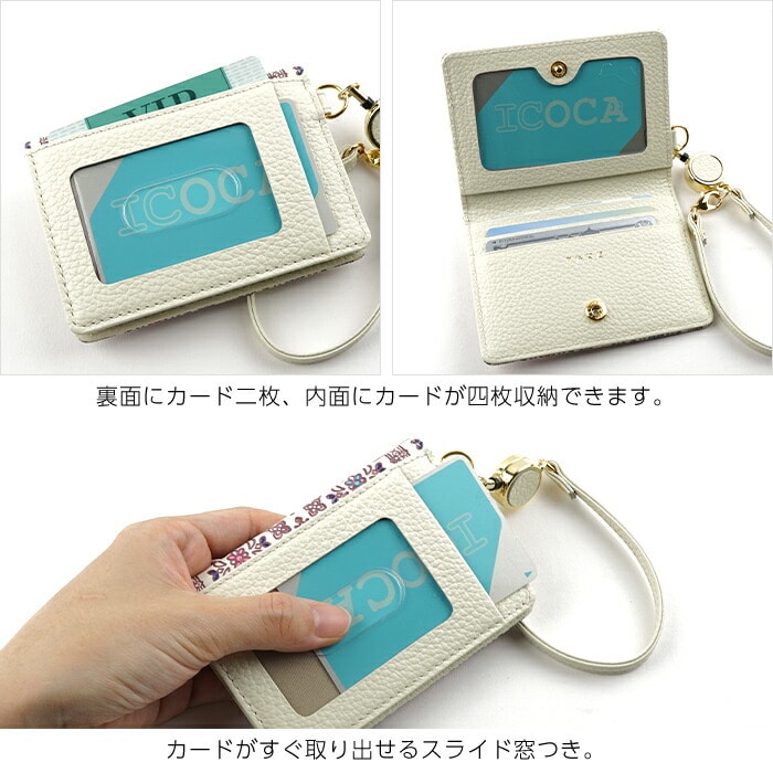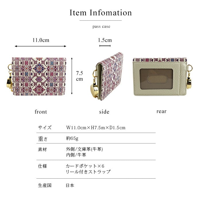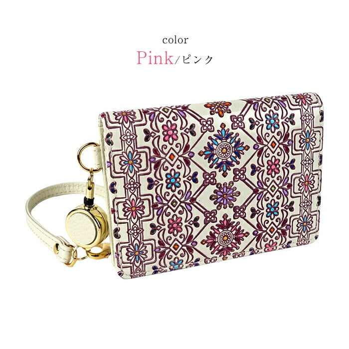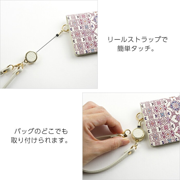 リール付きストラップがついているので通勤、通学にとても便利なパスケースです。