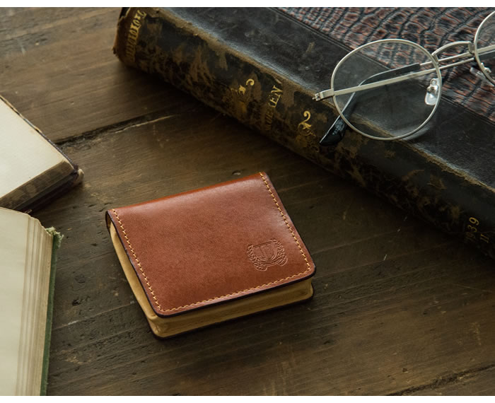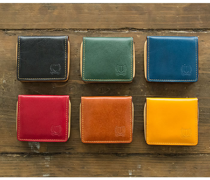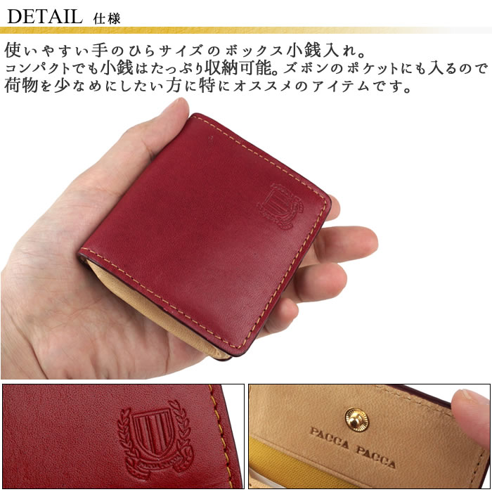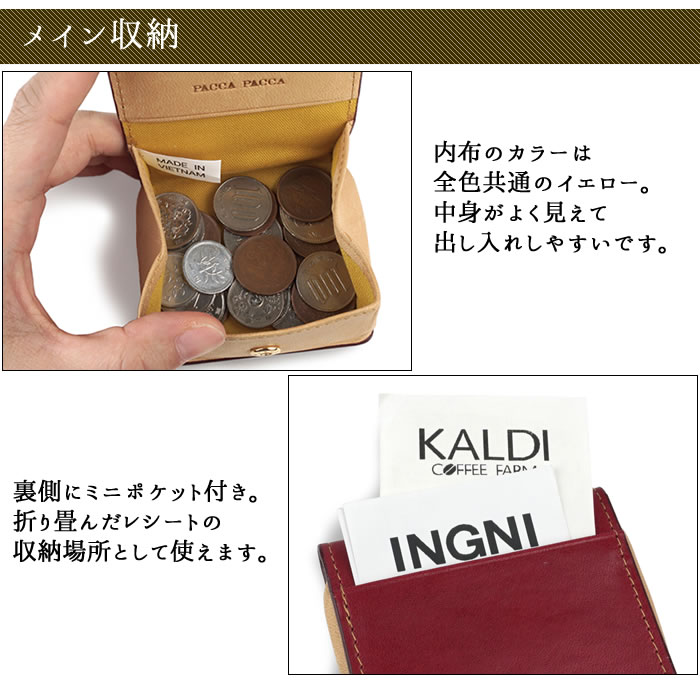 手のひらに収まるシンプルなボックス小銭入れ。広げやすい形で出し入れしやすいです。レシートなどが入るリアポケット付き。