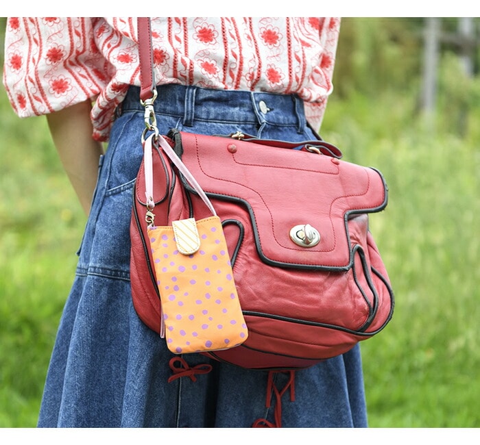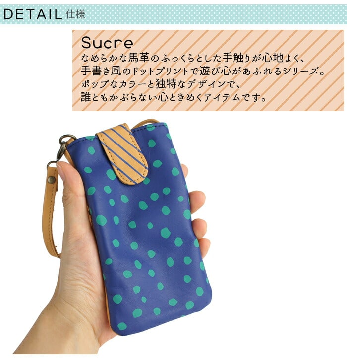 やさしい手触りの馬革に色鮮やかなデザインで仕上げました。ふっくらカワイイ馬革アイテムです。