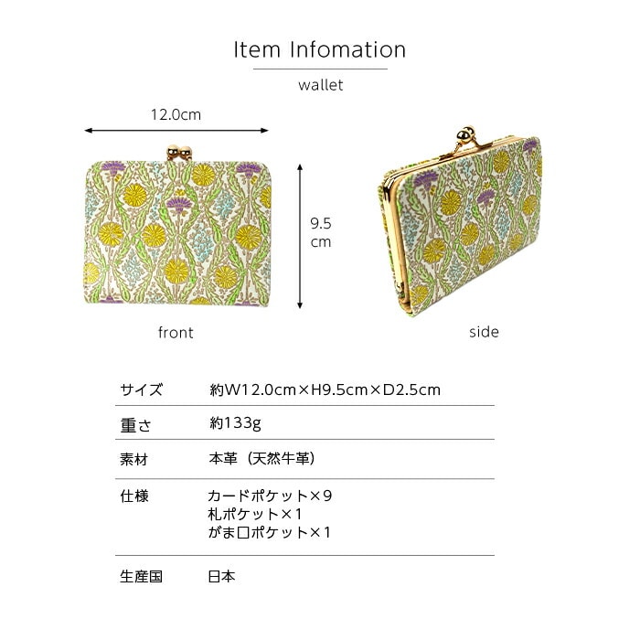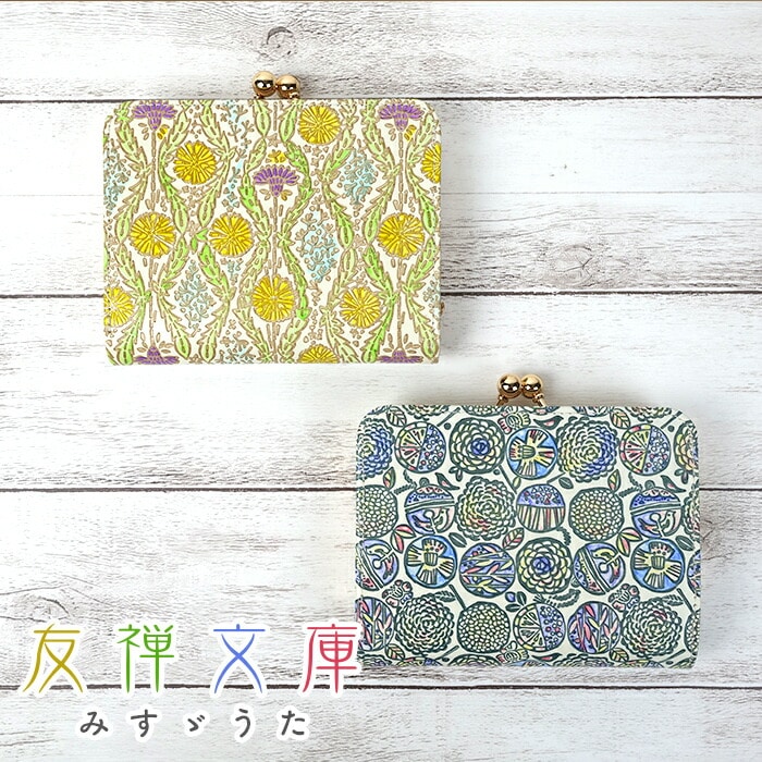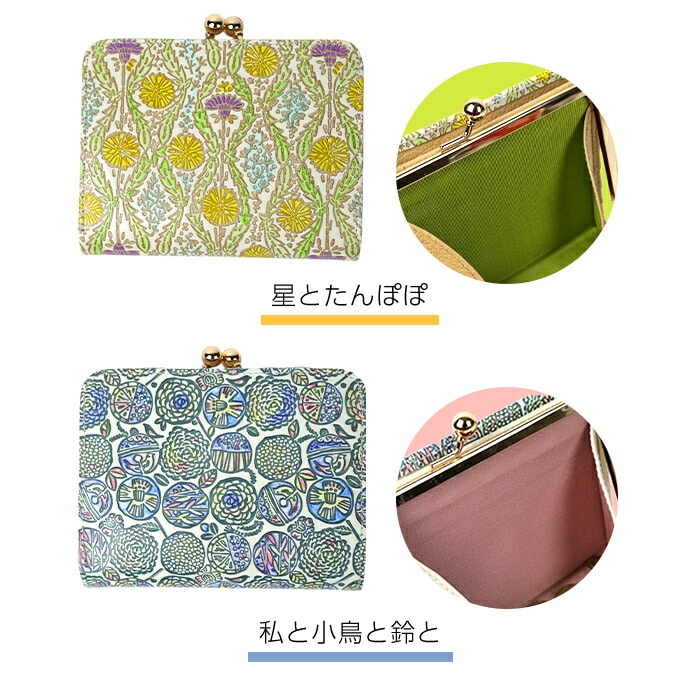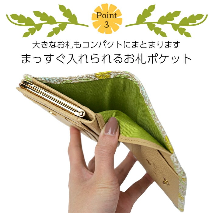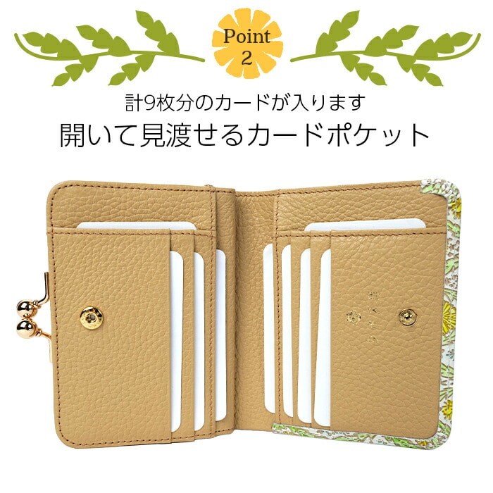 大きく開く口金で中身が見えやすいがま口二つ折り財布