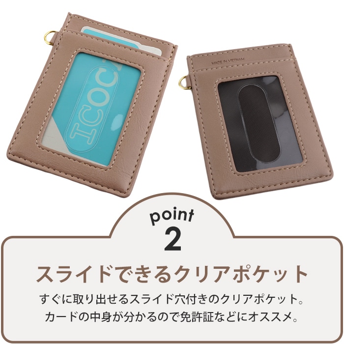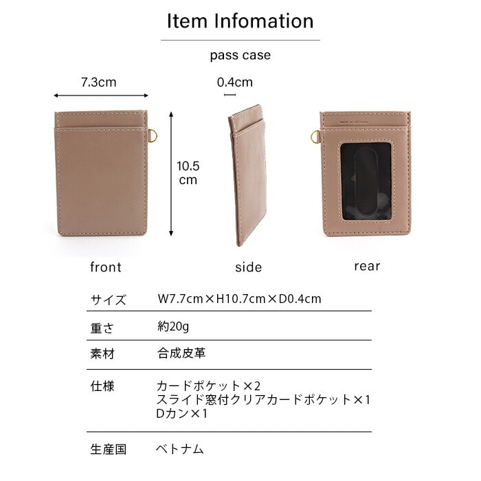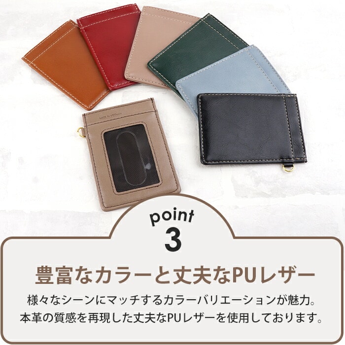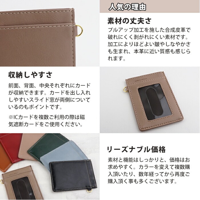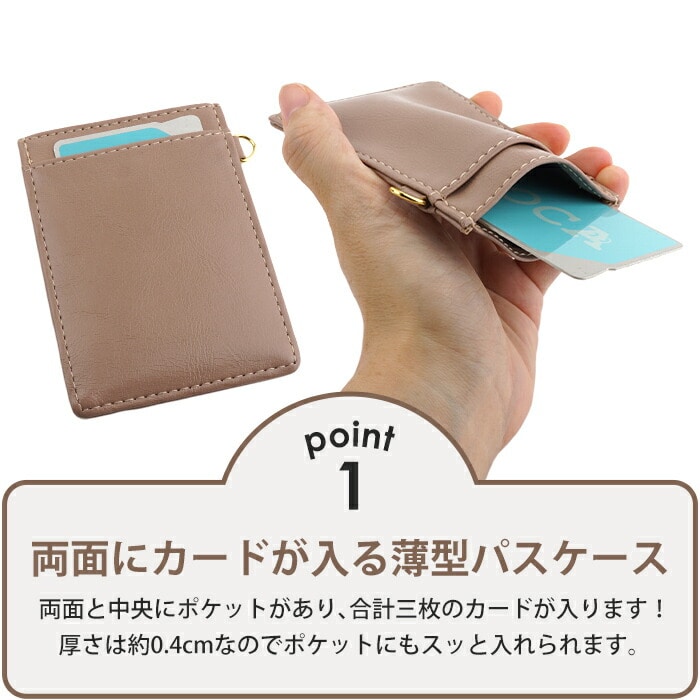ビジネスシーンに溶け込む落ち着いた色合いの単パスケース。ナチュラルな革の風合いを表現したフェイクレザーを使用したシンプル定期入れです。