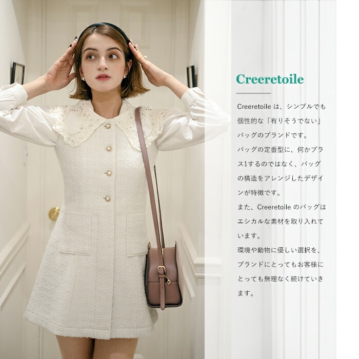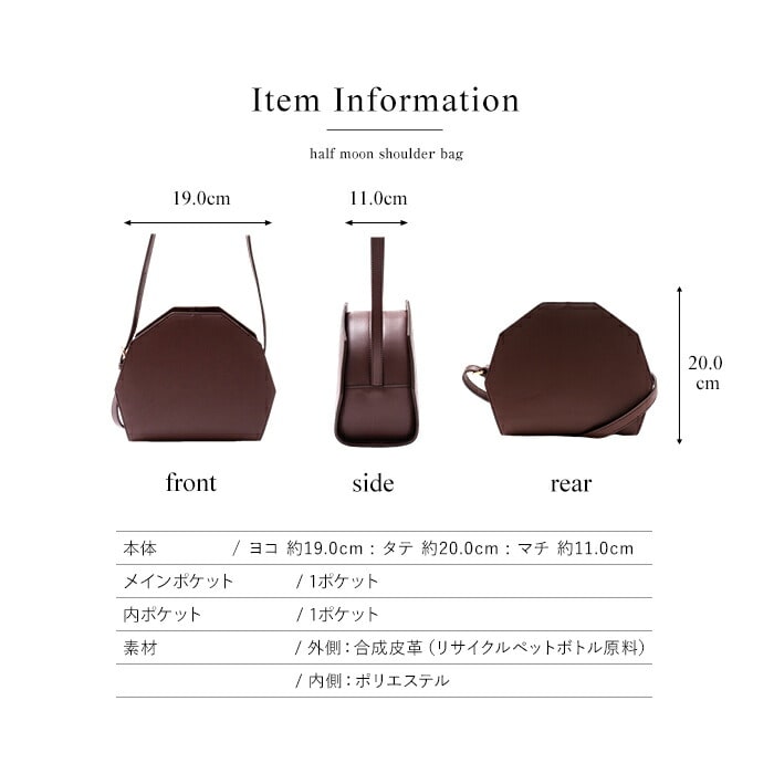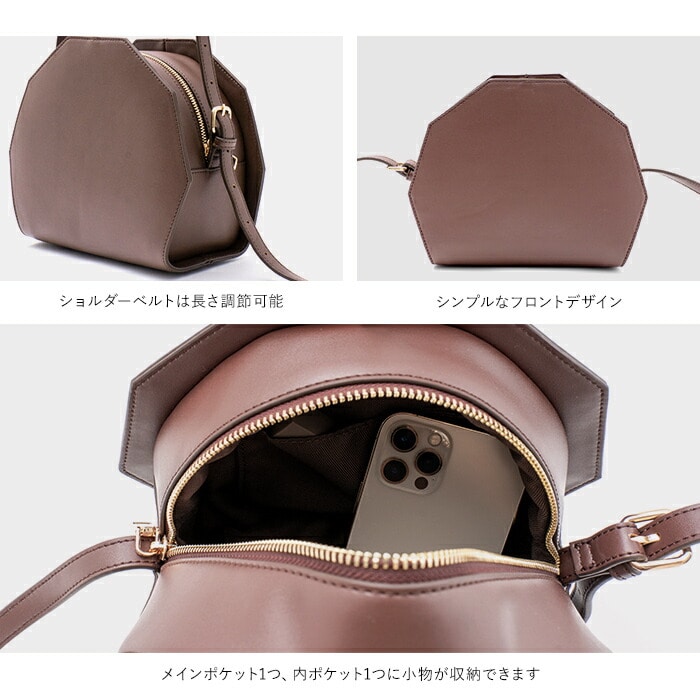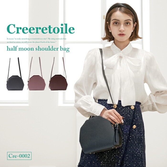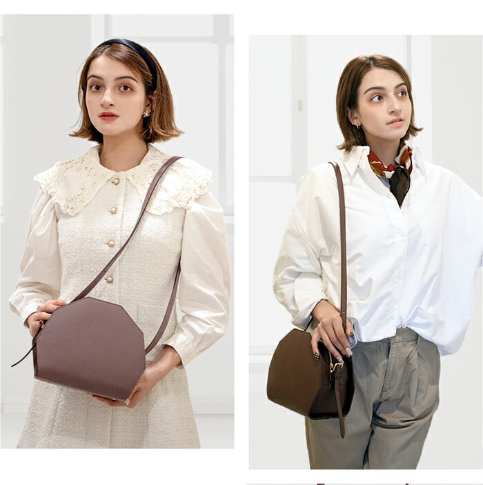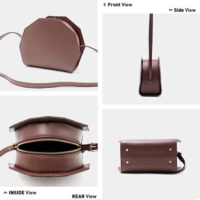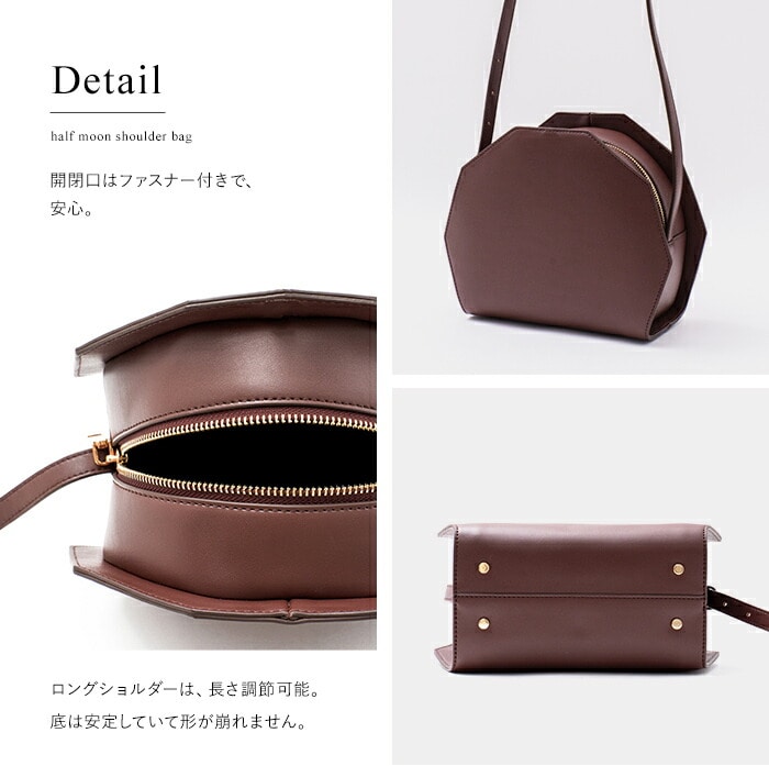 半円の解像度を落としたみたいにカクカクしたフォルムは、Tortue(亀)のような可愛いさです。コンパクトながらもマチが深いので、スマホやお財布を入れてもスペースが有ります。シンプルですが、ショルダーにもベルト風のアクセントが有り、どこから見ても抜かり無しのデザインです!