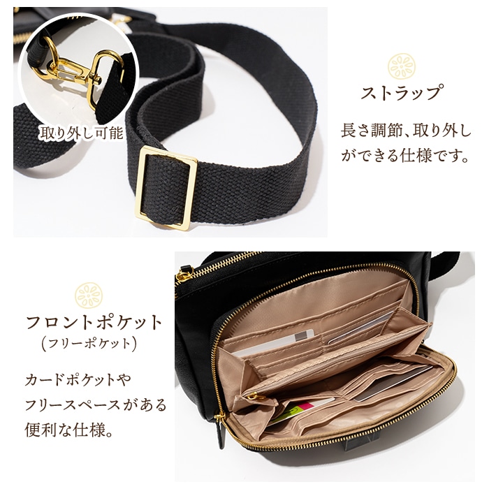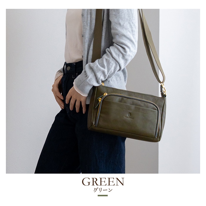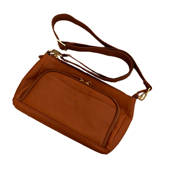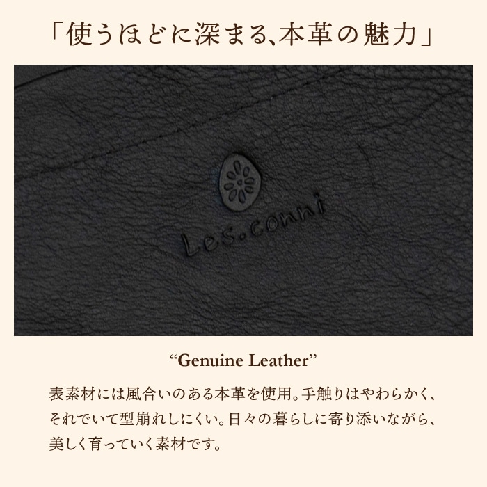 使うほどに愛着が深まる、毎日にちょうどいいバッグ。 レコンニのバッグは、見た目のやさしさの中にしっかりと使いやすさを備えています。 素材は、風合いのある本革を使用しています。 触りたくなるやわらかな手触りでありながら、型崩れしにくく、 日々の暮らしに寄り添いながら、美しく育っていく素材です。 フロントポケット内に、カードポケットや、ファスナーポケットがあるので、 フロントポケットをお財布として使用できる、お財布ショルダータイプ。 メインポケットは、スマホやポーチなどをまとめて収納できるゆとりあるスペースです。 ミニバッグとしても使いやすいコンパクトな見た目でも収納力があり、必要なものをまとめて持ち運べます。 外出時の“ちょうどいい”を叶える、実用性の高い仕様です。 細部にまで丁寧にデザインし、長くご愛用いただけるこだわりのバッグです。