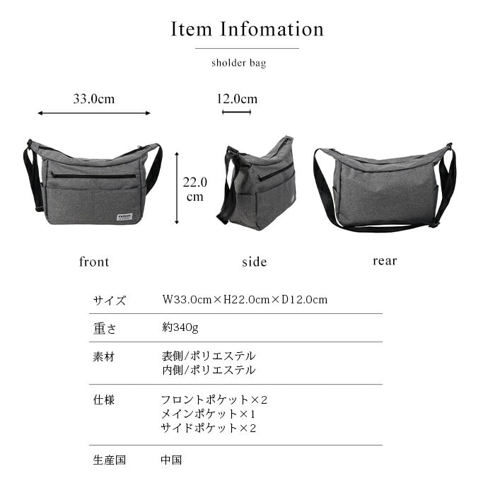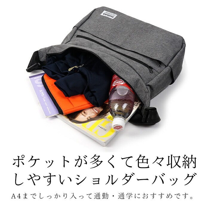 ポケットが多く色々収納しやすいショルダーバッグ。A4までしっかり入るので通勤・通学にもおすすめです。