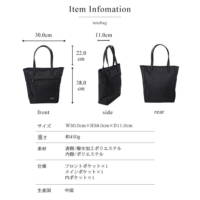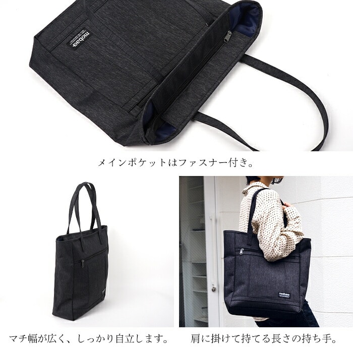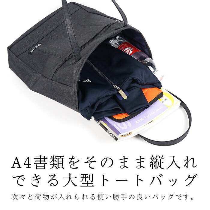 A4書類をそのまま縦入れできるトートバッグ。次々と荷物が入れられる使い勝手の良いバッグです。