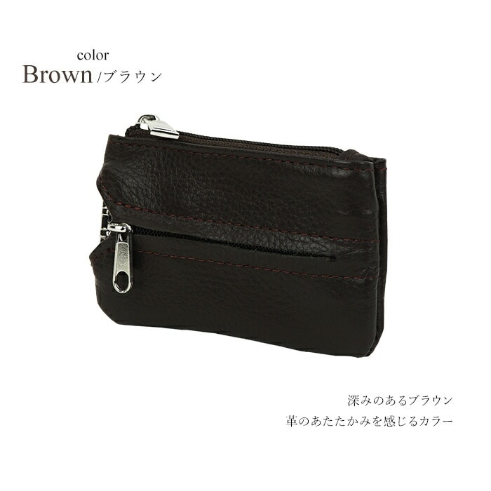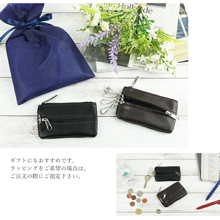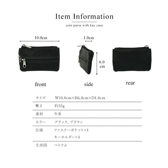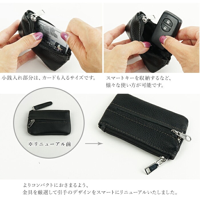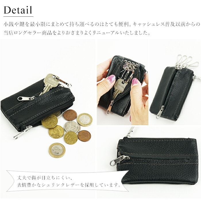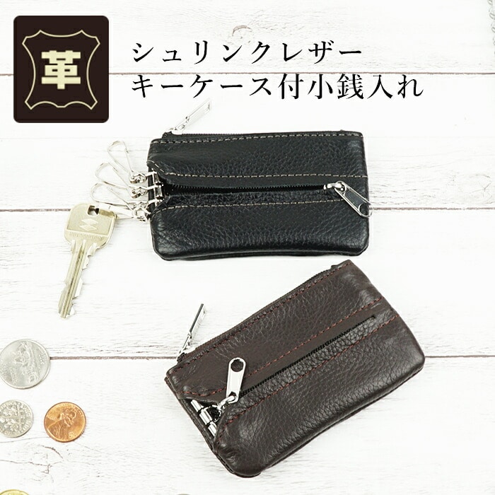 シュリンク加工を施した天然皮革のしっとりとしたさわり心地のレザーアイテム。ビジネス・フォーマルにピッタリなキーケースが付いた小銭入れです。