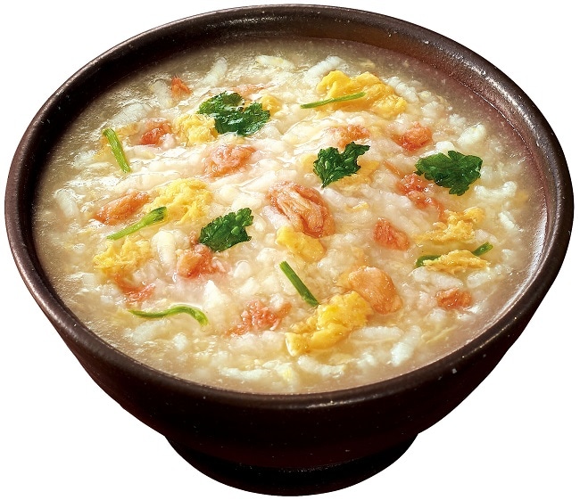 精白米(国産)、液全卵、さけほぐし身、みつば、食塩、さけエキス、しょうゆ、みりん、はくさいエキスパウダー、魚介エキスパウダー、ホタテエキスパウダー、オニオンエキスパウダー、酵母エキスパウダー、しいたけエキスパウダー、こんぶ粉末/調味料(アミノ酸等)、増粘剤(加工デンプン)、酸化防止剤(ビタミンE)、香料、ベニコウジ色素、(一部にえび・小麦・卵・いか・さけ・大豆・鶏肉を含む)