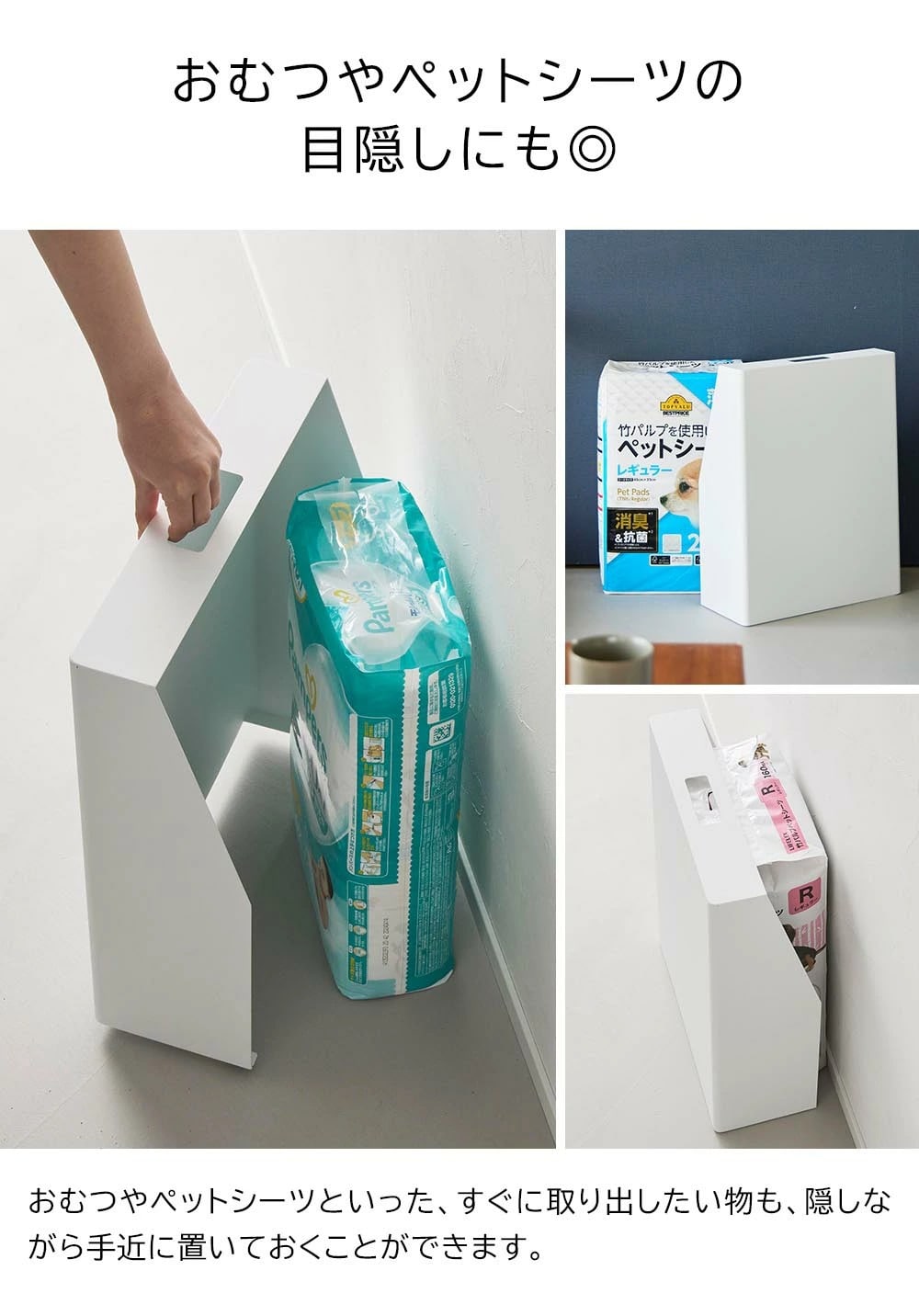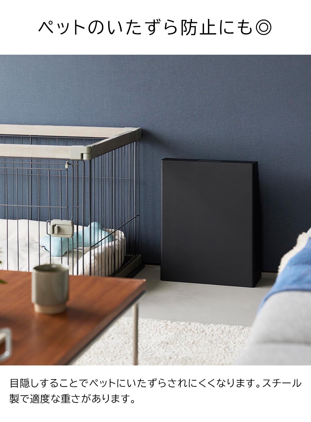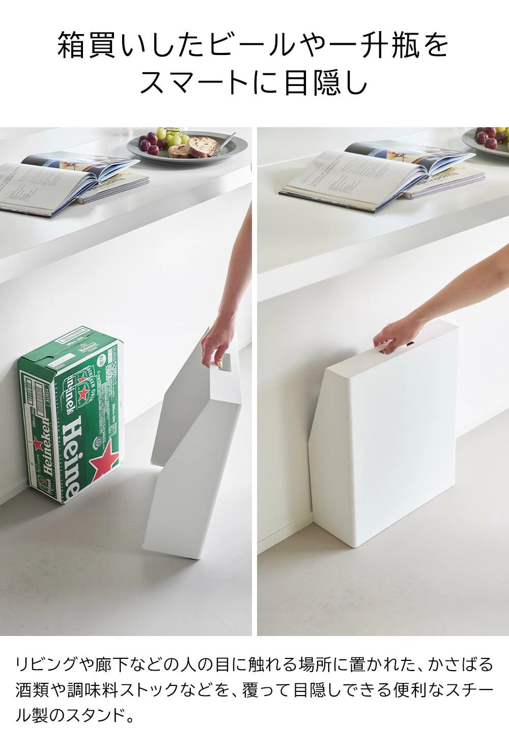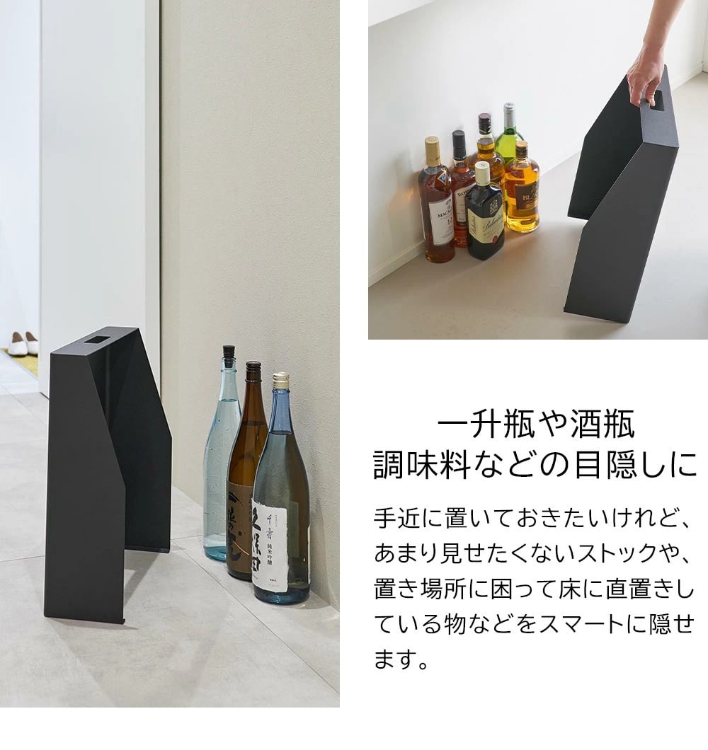 室内の床に直置きしている一升瓶や箱買いしたビールなどは、できればあまり人に見せたくないもの。 こちらのスタンドをサッと前に置くだけで、簡単に目隠しできます。 手近に置いておきたいけれど、丸見えにしておくとどうしても生活感が出てしまう、酒類や調味料ストック、おむつやペットシーツなど、様々な物を覆って簡単に隠せます。 ペットのいるお宅では目隠しすることでいたずら防止にもなり大変便利です。 シンプルなデザインで、お部屋のインテリアの邪魔をせずスタイリッシュに空間に馴染みます。