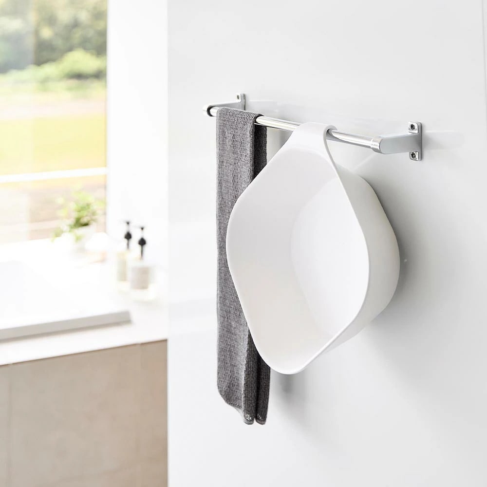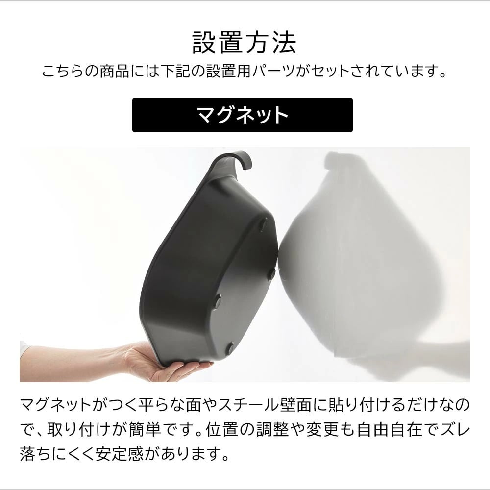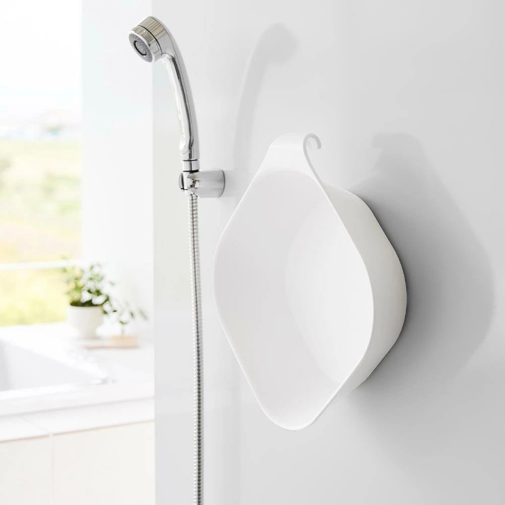 お風呂で置き場所に困る湯おけを、マグネットでペタッと簡単に壁面収納できるスクエア型の湯おけ。 水切れが良く乾きやすいので、ヌメリにくく衛生的です。 浴室のカウンターや床に置かない事で、お掃除もラクになります。 マグネットは湯おけの底面に埋め込まれているので、壁や床への色移りを防ぎます。 また、湯おけと一体型になっているフックは、浴室のタオルバーや扉のバー、シャワーフックなど、浴室の様々な場所に引っ掛けて収納ができ便利です。
