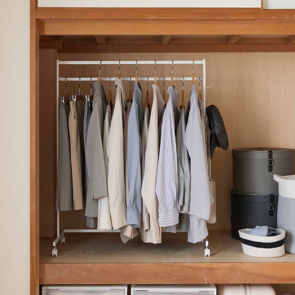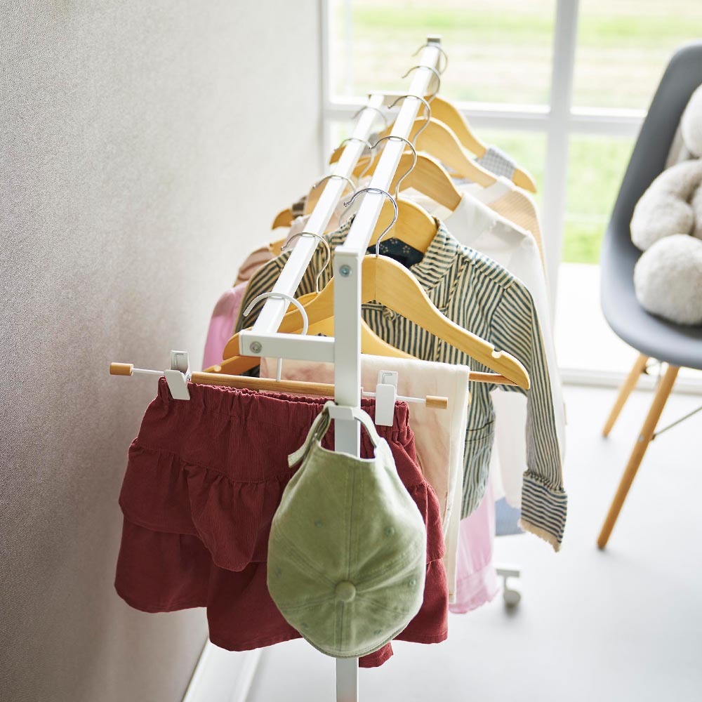 段違いに服を掛けて 収納力アップ! ハンガーラック 2段