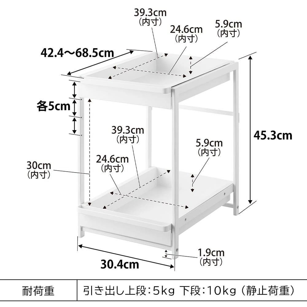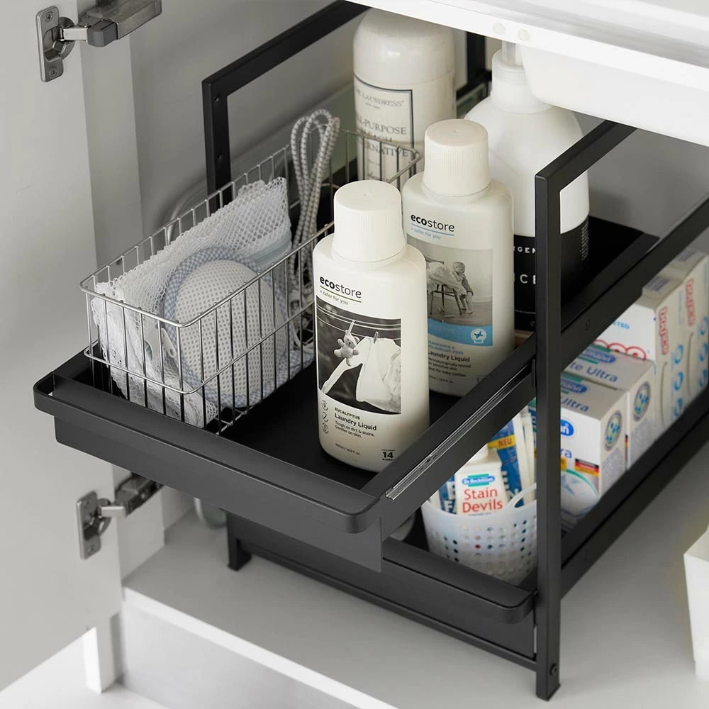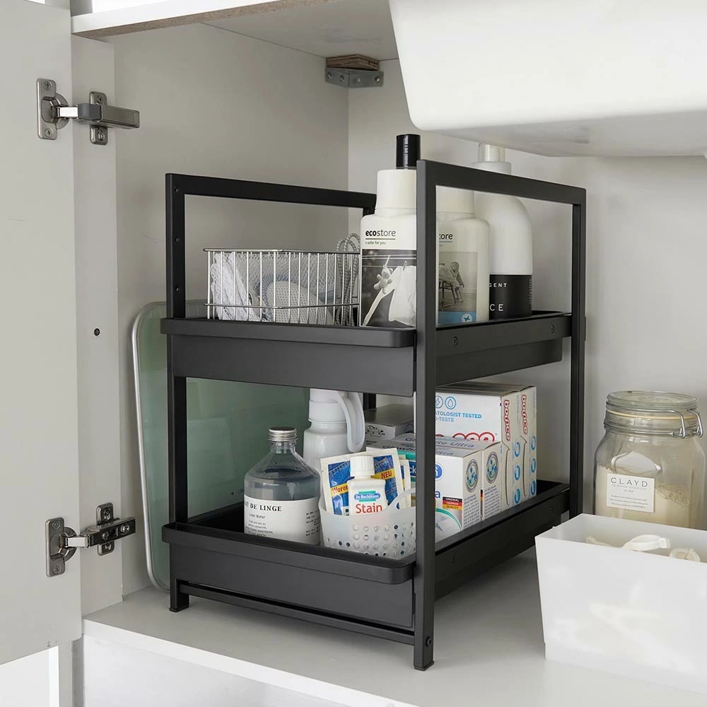 シンク下の空間を無駄なく 活用!大容量で使いやすい 引き出し式2段ラック