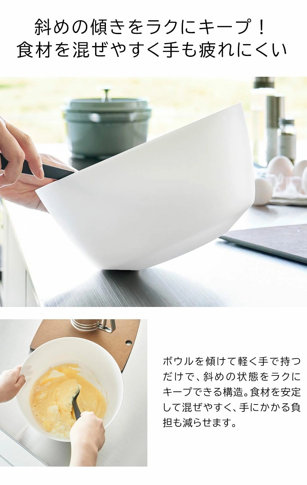 斜めの傾きをキープ! 安定して混ぜやすい 電子レンジ対応のボウルL