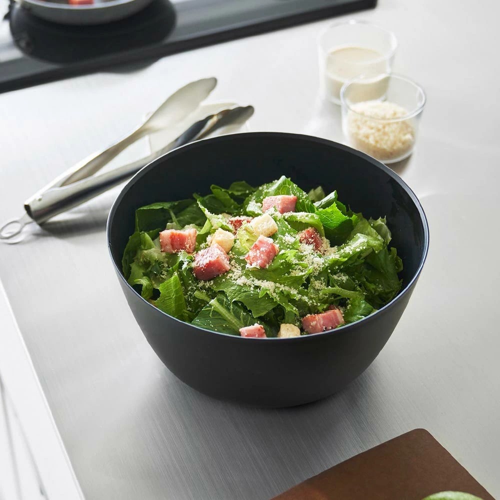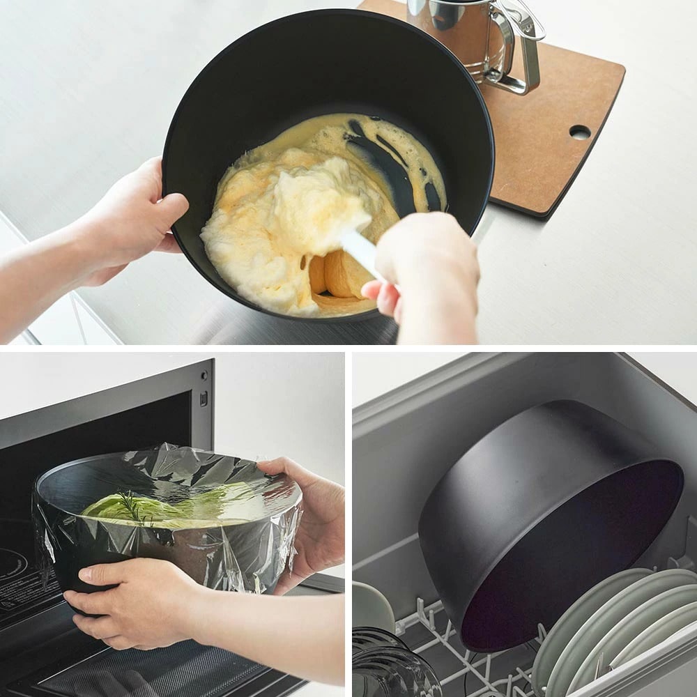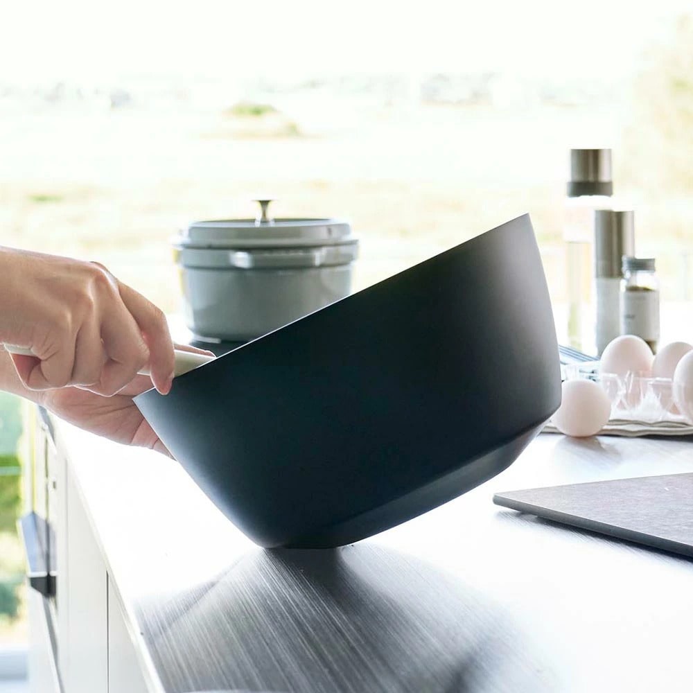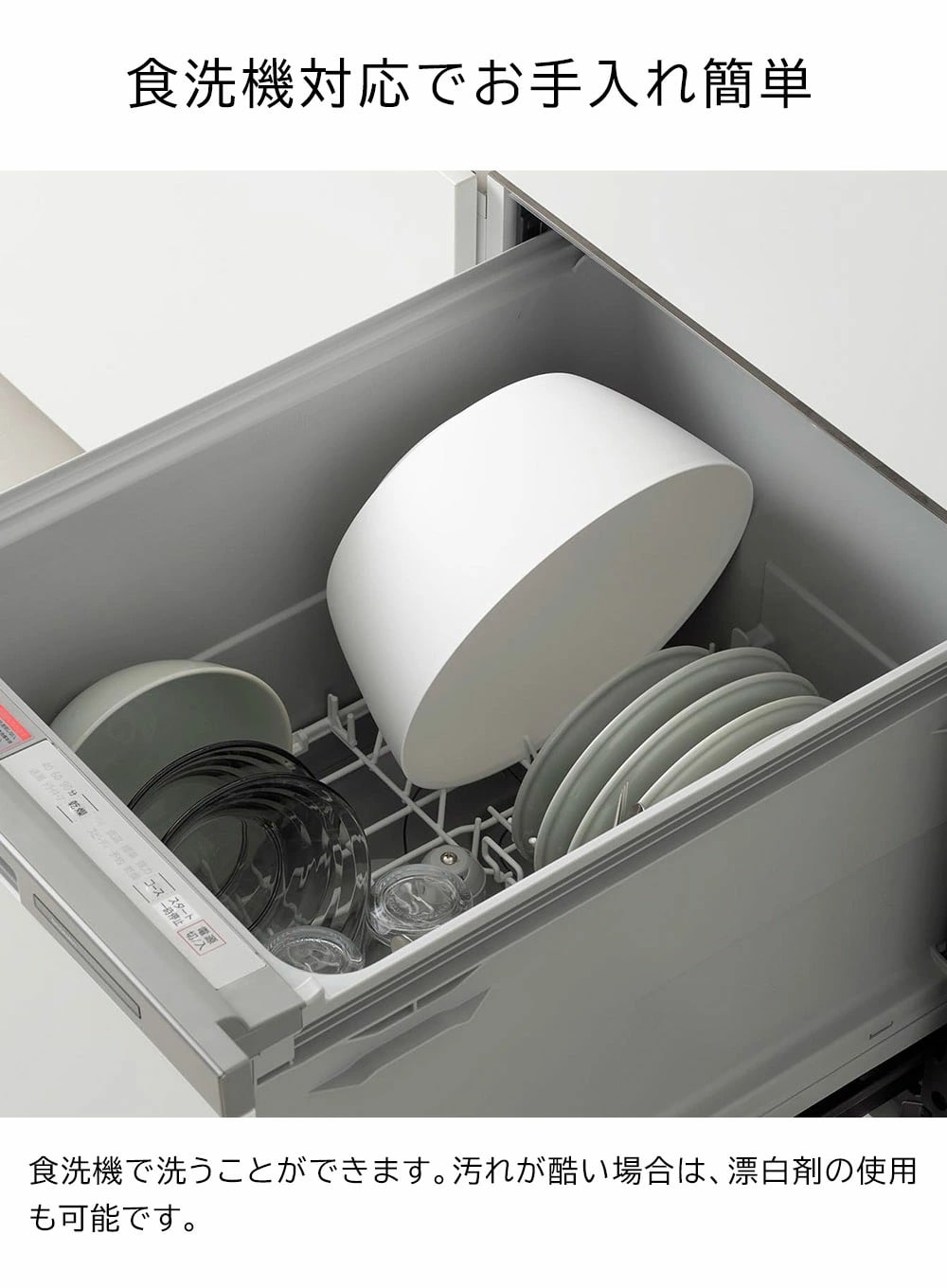 傾けて軽く手で持つだけで、斜めの状態をラクにキープでき、食材を混ぜやすい調理ボウルです。安定して混ぜられるので手にかかる負担も軽くなります。電子レンジで加熱できるので、下ごしらえに便利。冷凍保存も可能です。スッキリとしたシンプルなデザインで、器としても使えます。食卓にそのまま出せるので、洗い物を減らせます。食洗機対応でお手入れも簡単です。