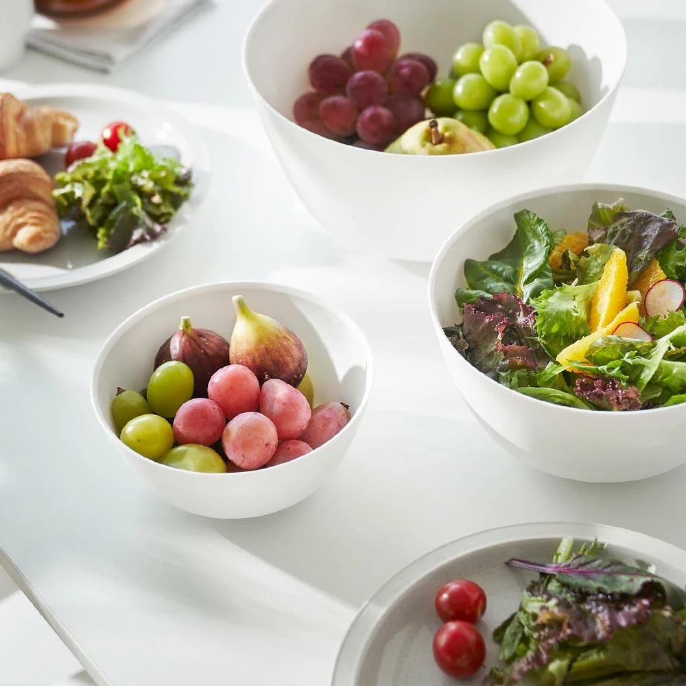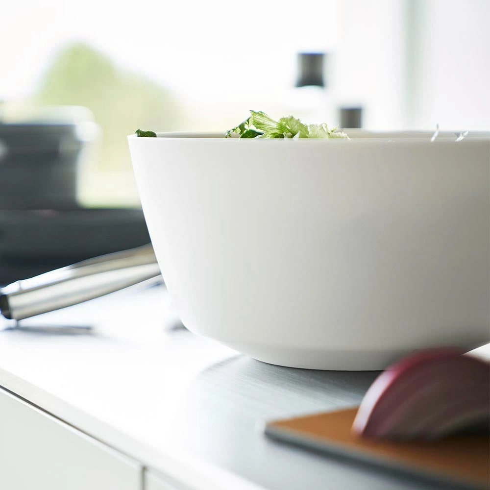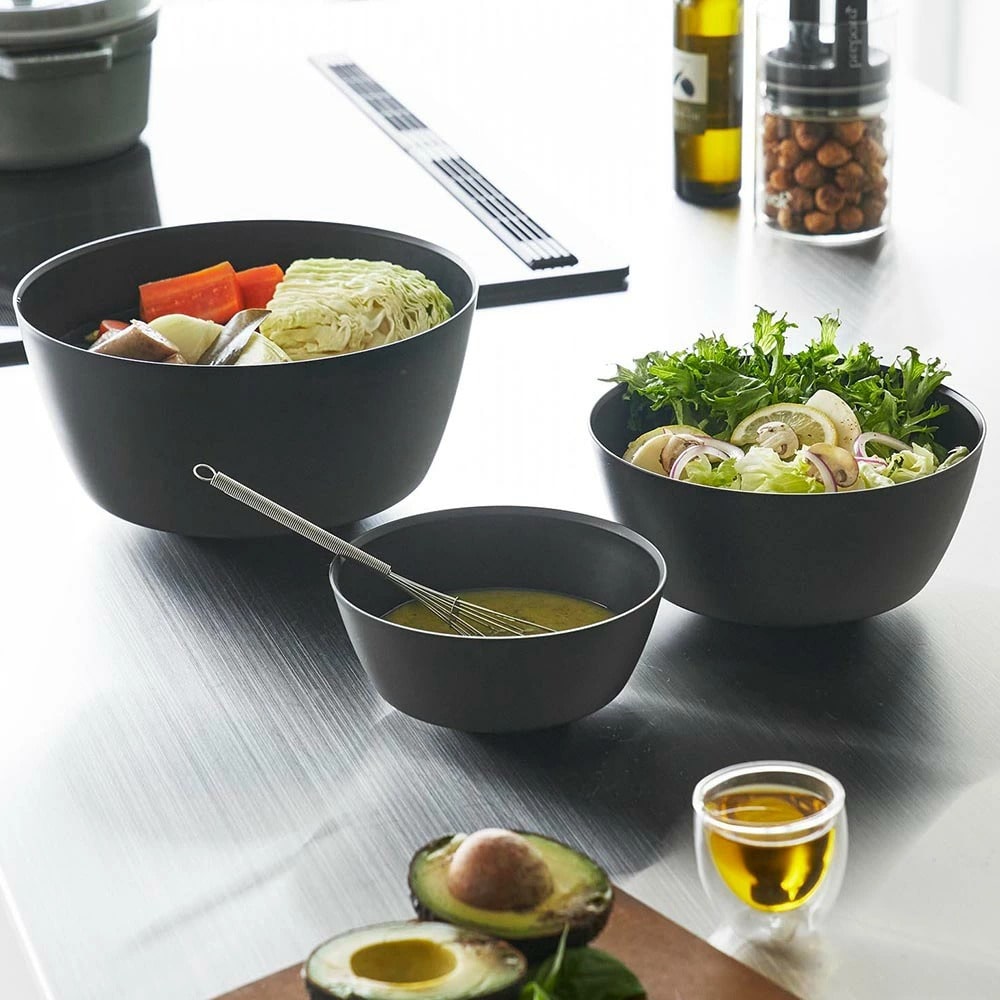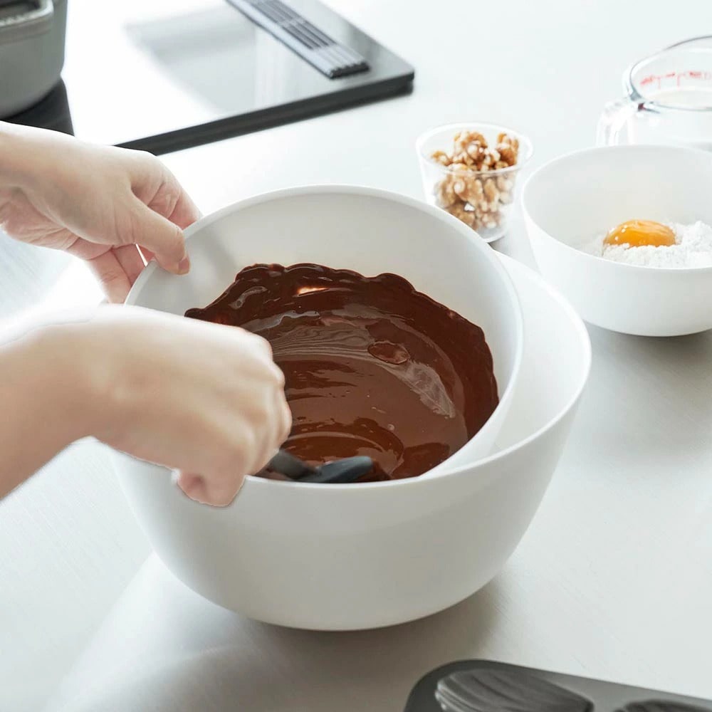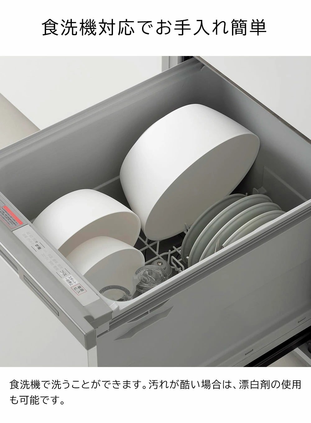 傾けて軽く手で持つだけで、斜めの状態をラクにキープでき、食材を混ぜやすい調理ボウルS・M・Lの3サイズセットです。安定して混ぜられるので手にかかる負担も軽くなります。ボウルのサイズによって料理ごとに使い分けたり、食材別に分けておくなど、調理中の様々な場面に対応できます。 ボウルは電子レンジで加熱できるので、下ごしらえに便利。冷凍保存も可能です。スッキリとしたシンプルなデザインで、器としても使えます。食卓にそのまま出せるので、洗い物を減らせます。食洗機対応でお手入れも簡単です。