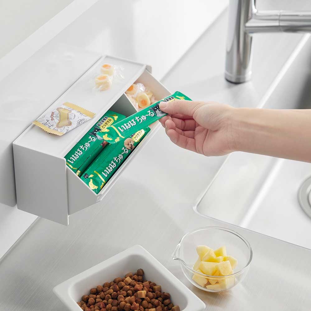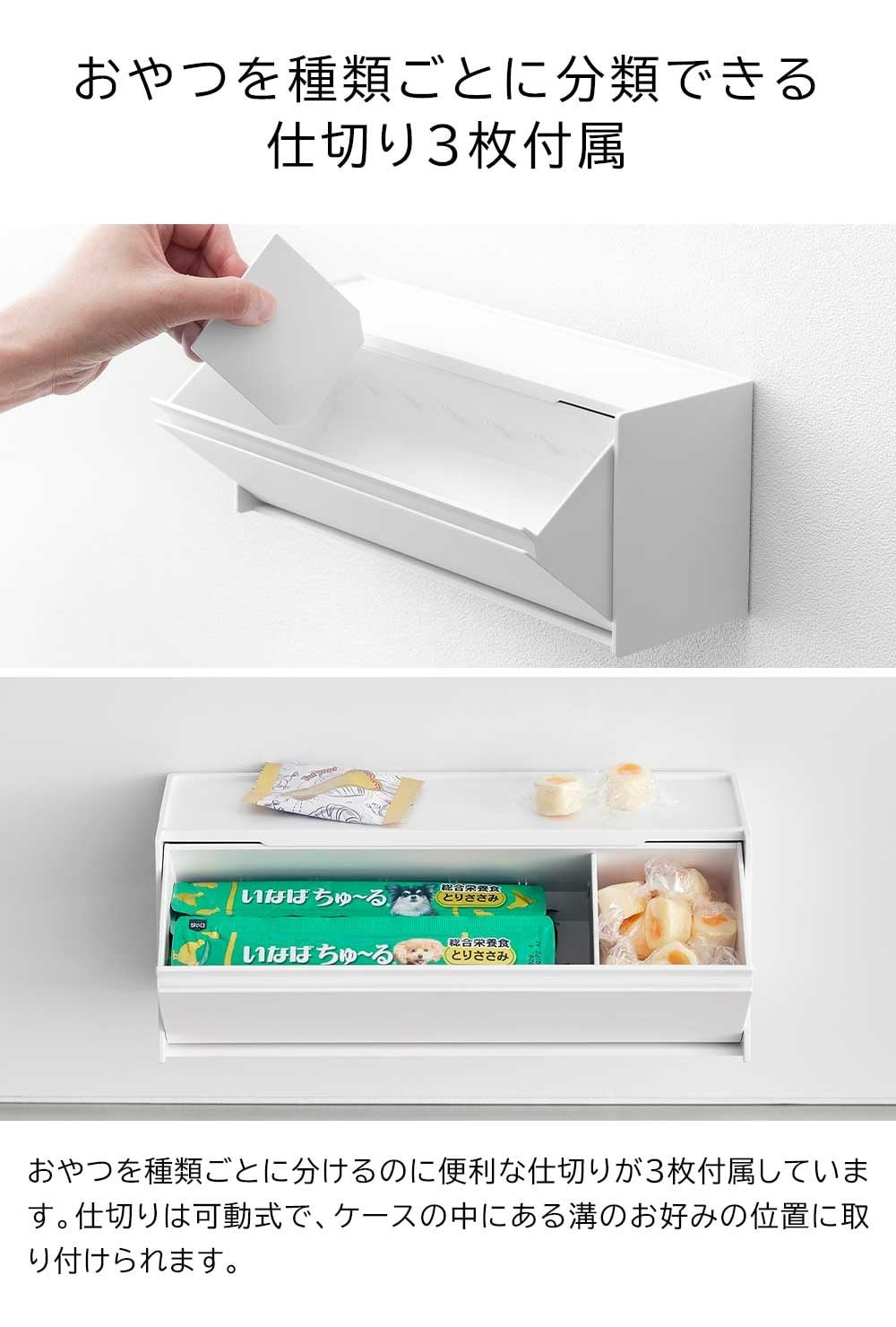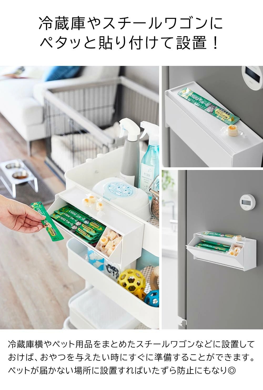 ペットのおやつを手近に収納 マグネットで壁面収納できる フラップ式のおやつケース