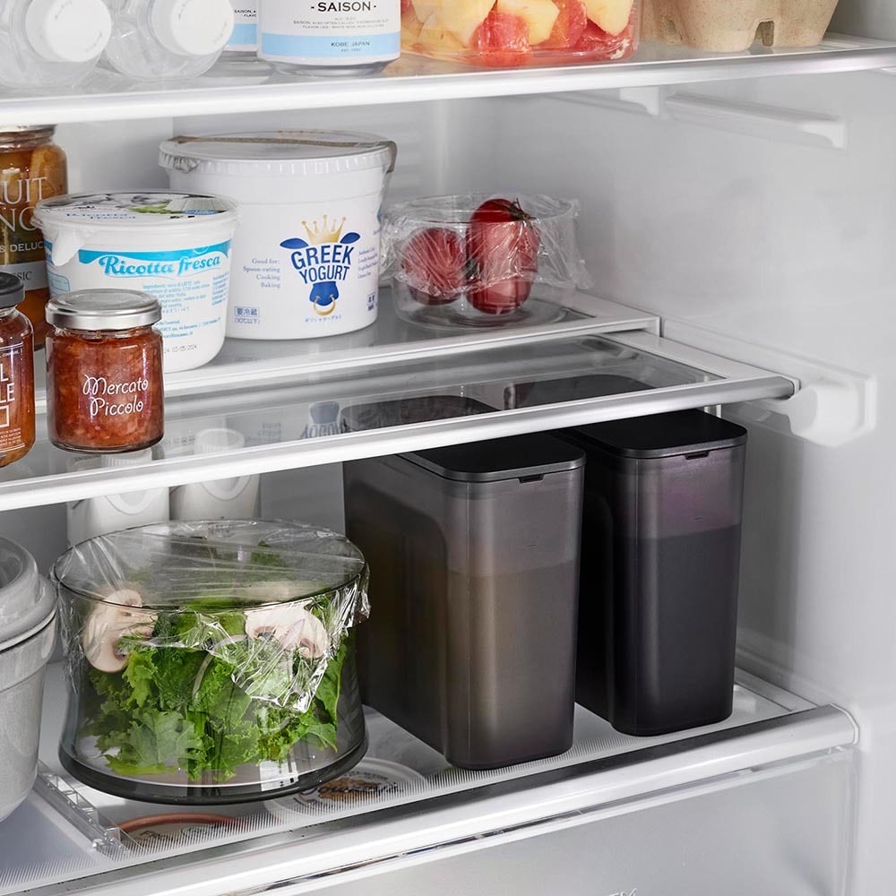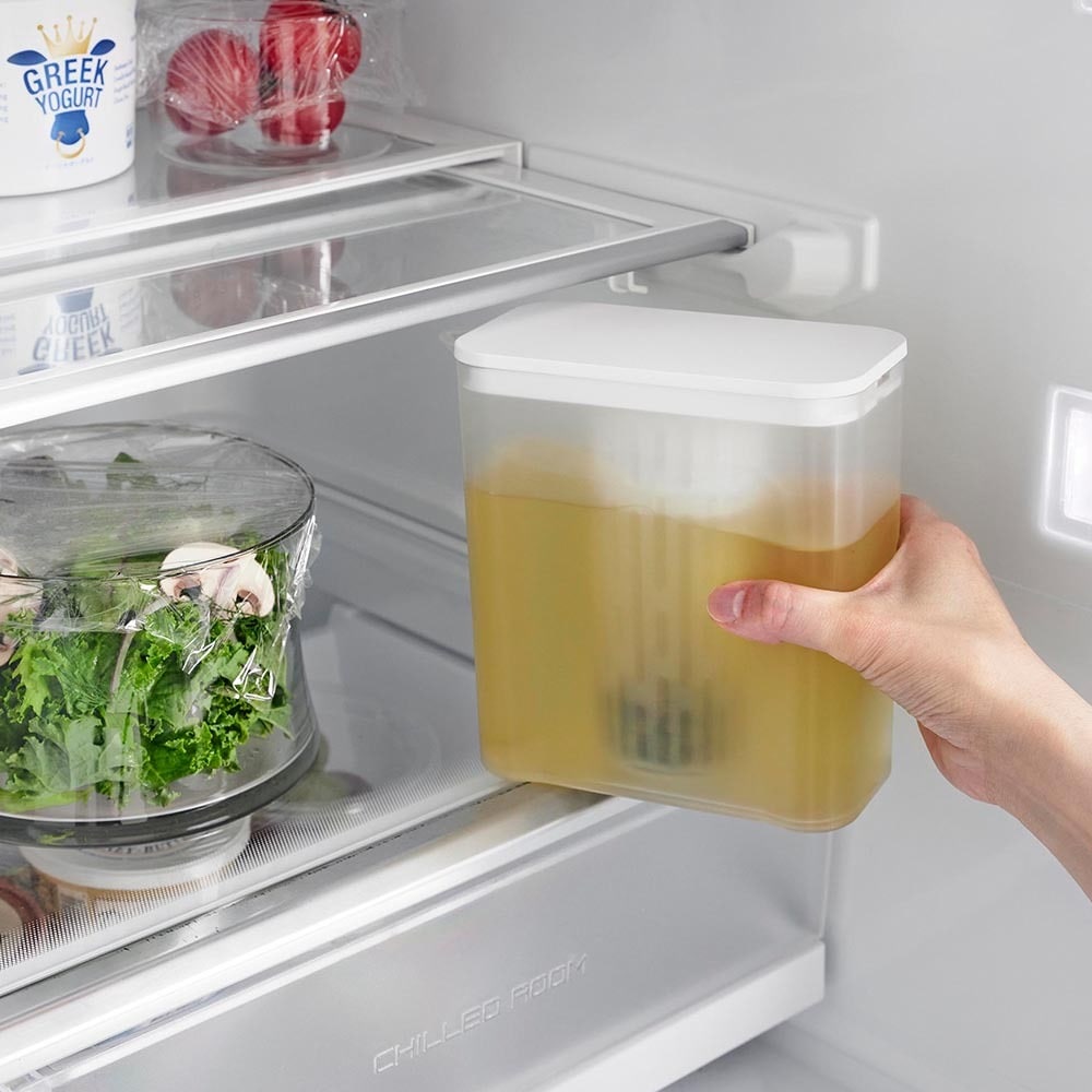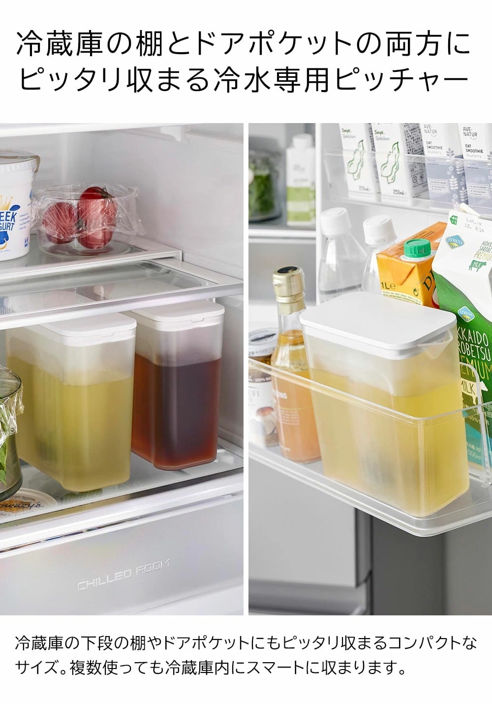 冷蔵庫の棚とドアポケットの 両方に収納できる フィルター付き冷水筒 1L