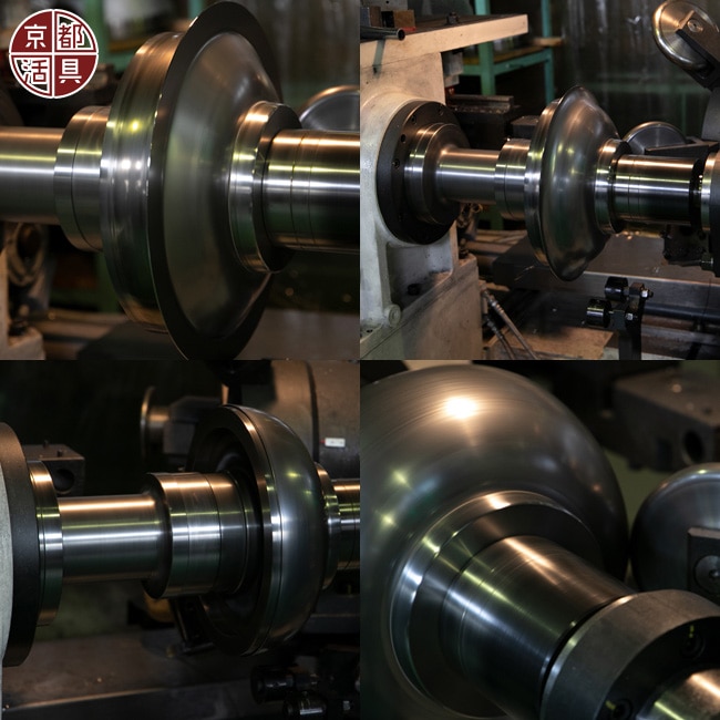 鉄といえば、「重い」。 それが、鉄の調理器具に対する印象ではないでしょうか? 本体だけでも重いのに、食材が入るともっと重くなります。 折角おいしい料理が出来る鉄のフライパン。 使いにくくては意味がありません。 京都活具の鉄フライパンは、調理に必要な熱容量・強度を確保しつつ、 側面部分を最大限削る事で、軽量化されています。 だから、スピニング加工されていないものと比べると、非常に軽く使いやすくなっています。
