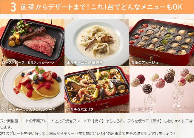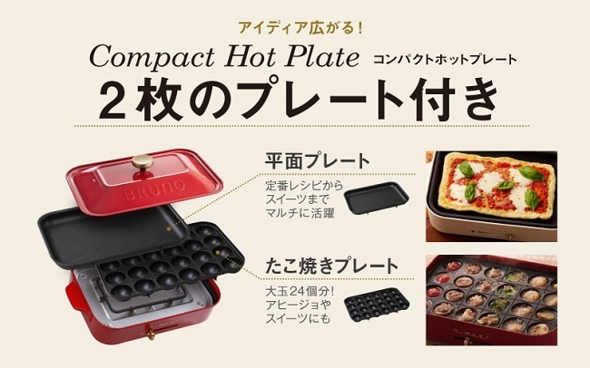 ※【コンパクトホットプレート】には平面プレートとたこ焼きプレートが付属しています。