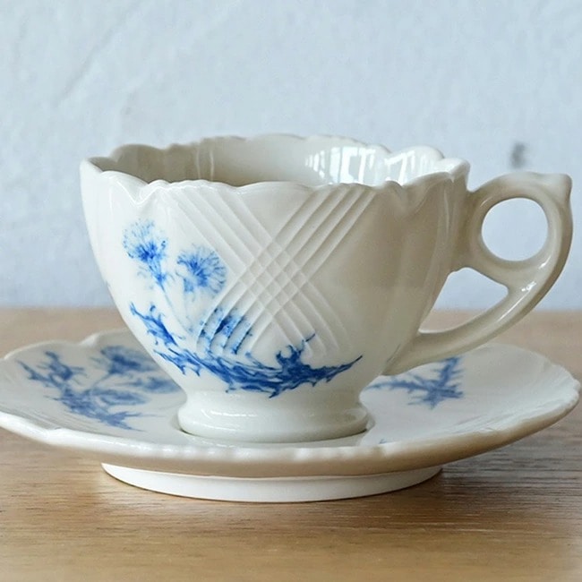 ぽってりとした花リムに陽の光のきらめきや風の動きをイメージした繊細なレリーフを織り重なるようにデザインしました。