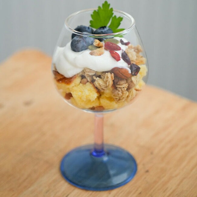 【ピンク×ブルー】ステムがピンク色、台座が青色のコンビカラー。お洒落で軽やかな印象の色合い。