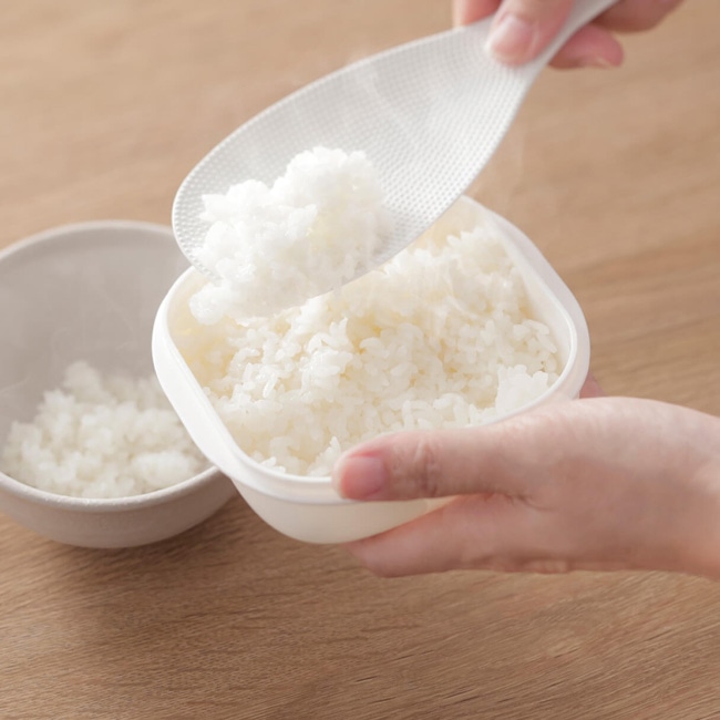 電子レンジで冷凍ごはんをムラなくふっくらと温められる保存容器です。