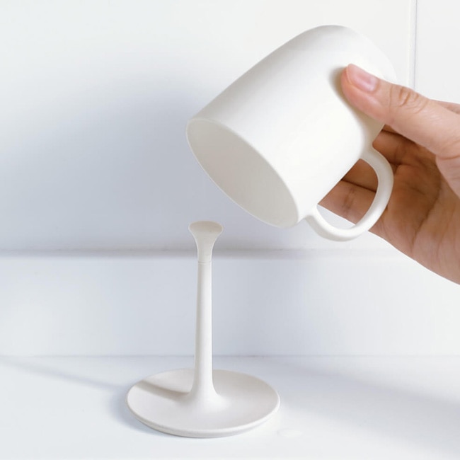 スタンドにかければ、コップの縁がどこにも触れず、しっかりと水が切れる。